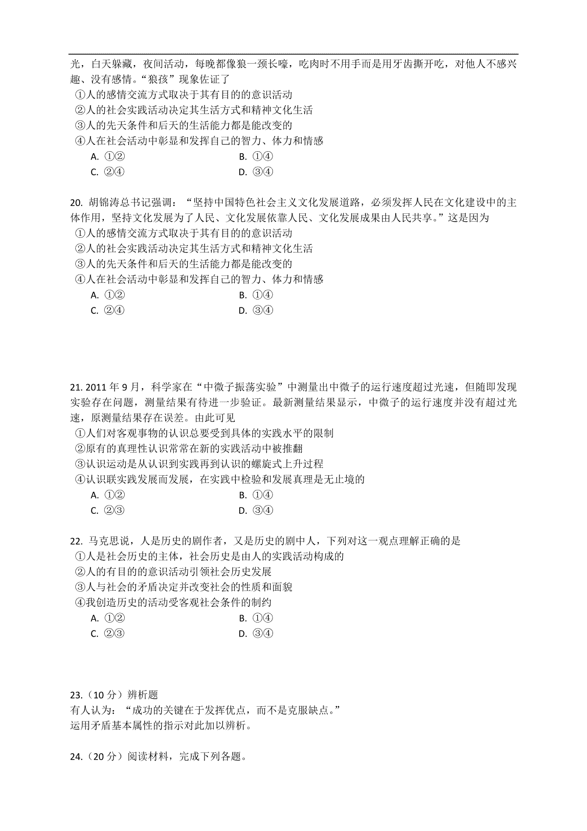 2012年海南高考政治试卷及答案卷于近期开考,本次考试对考生对知识的掌握参考价值大,为了方便大家复习掌握错题!小编在下文为大家准备了2012年海南高考政治试卷及答案卷试卷及答案解析详情,仅供考生参考。
