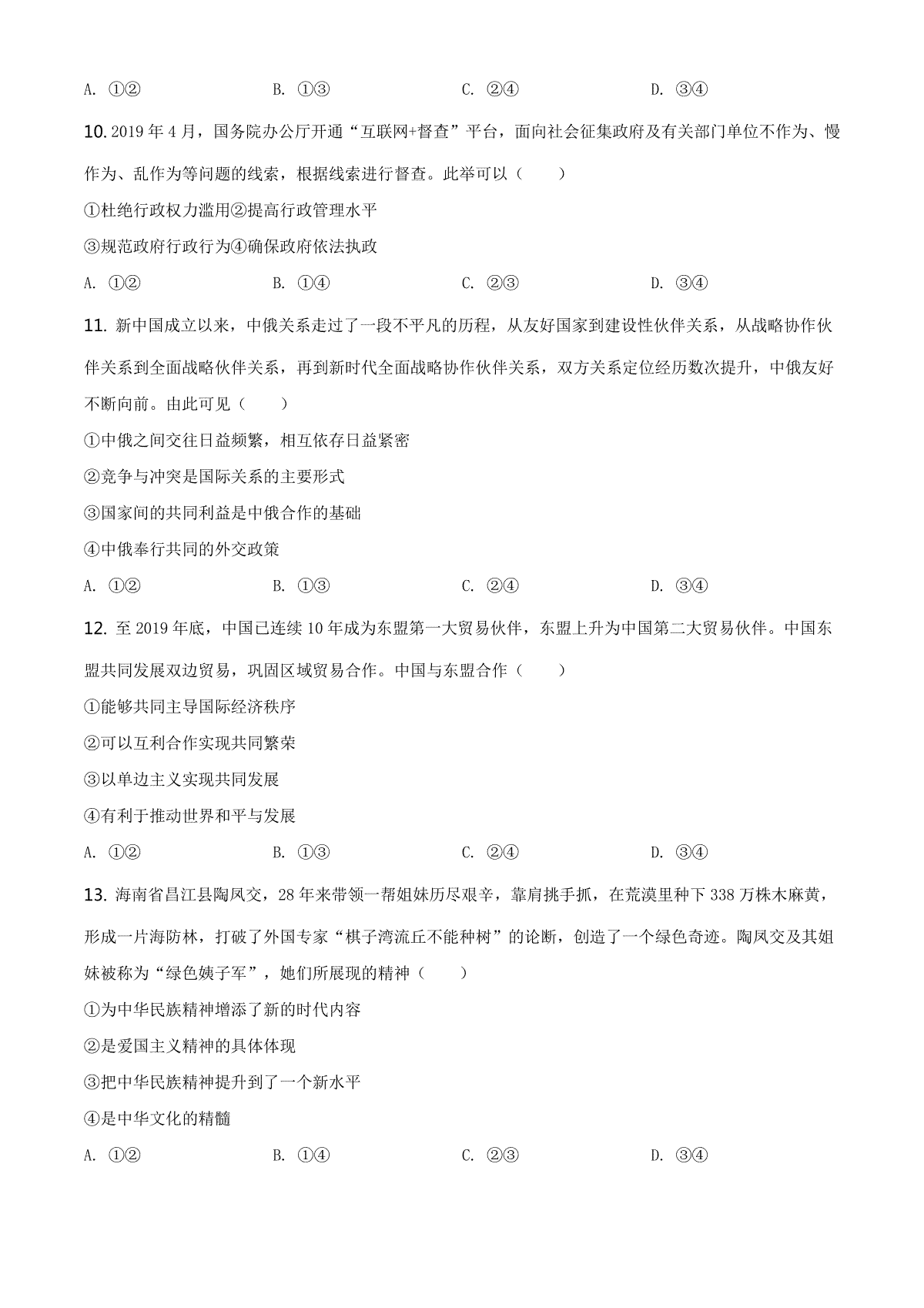 下载2020年海南省高考政治(原卷版)PDF格式或doc