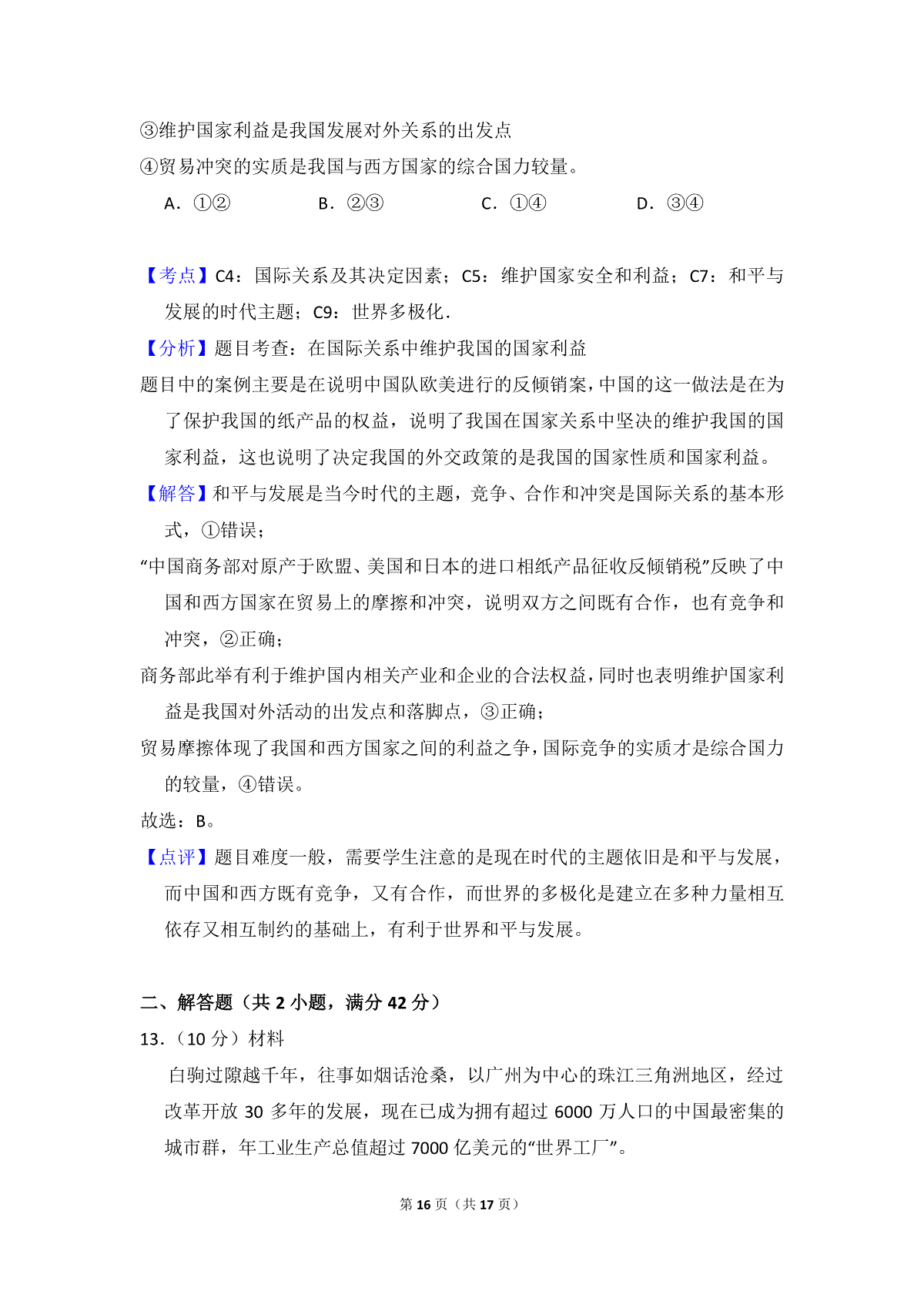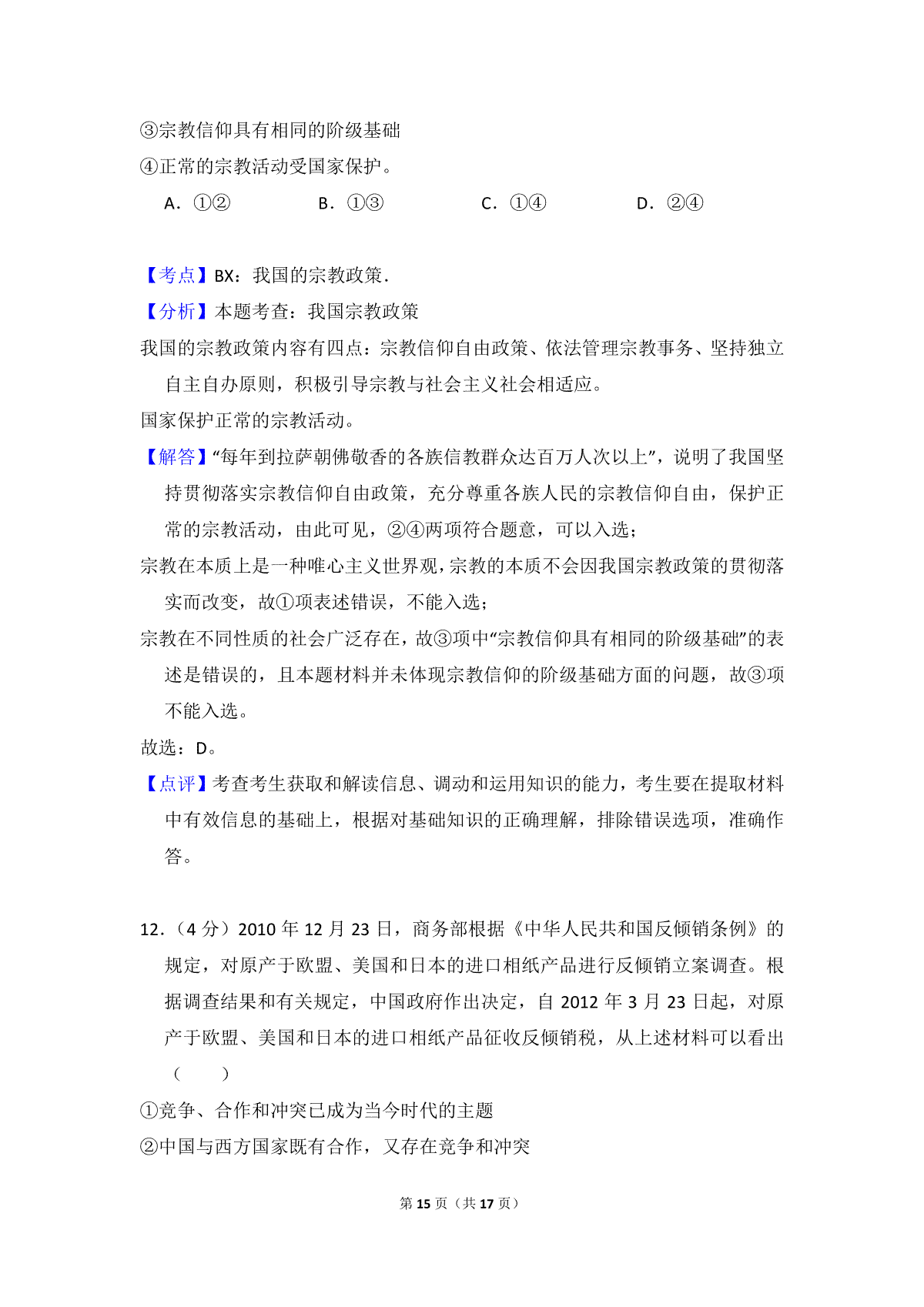 如果你想下载2012年全国统一高考政治试卷(大纲版)(含解析版)DOC或PDF版,请点击本文末链接!