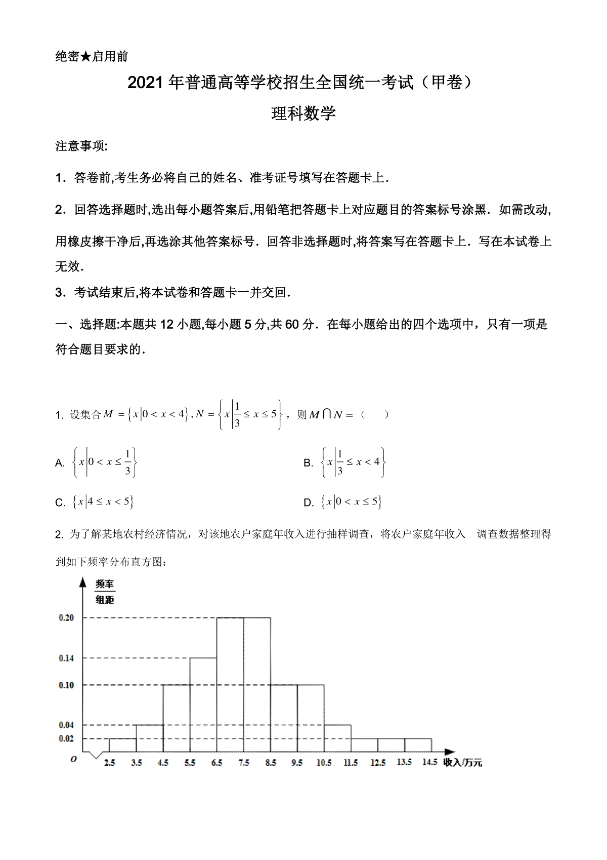 一、2021年全国高考甲卷数学(理)试题(原卷版)