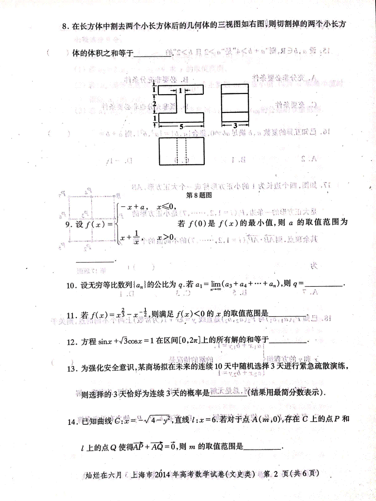 一、2014年上海高考数学文科真题试卷(PDF版)