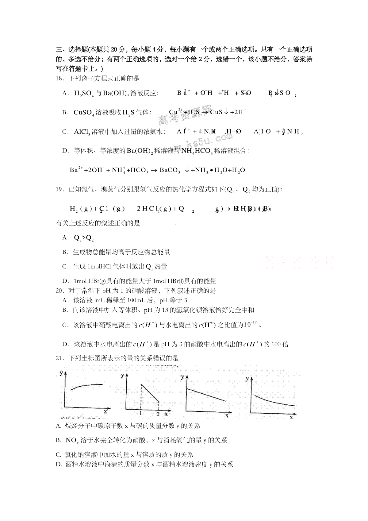 下载2009年上海市高考化学试题及答案PDF格式或doc