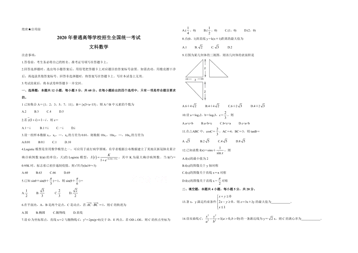 一、2020年全国统一高考数学试卷(文科)(新课标ⅲ)(原卷版)