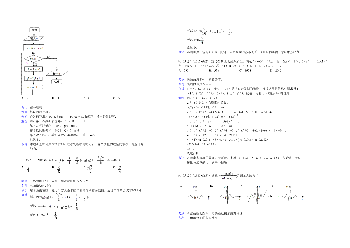 一、2012年高考真题数学【理】(山东卷)(含解析版)