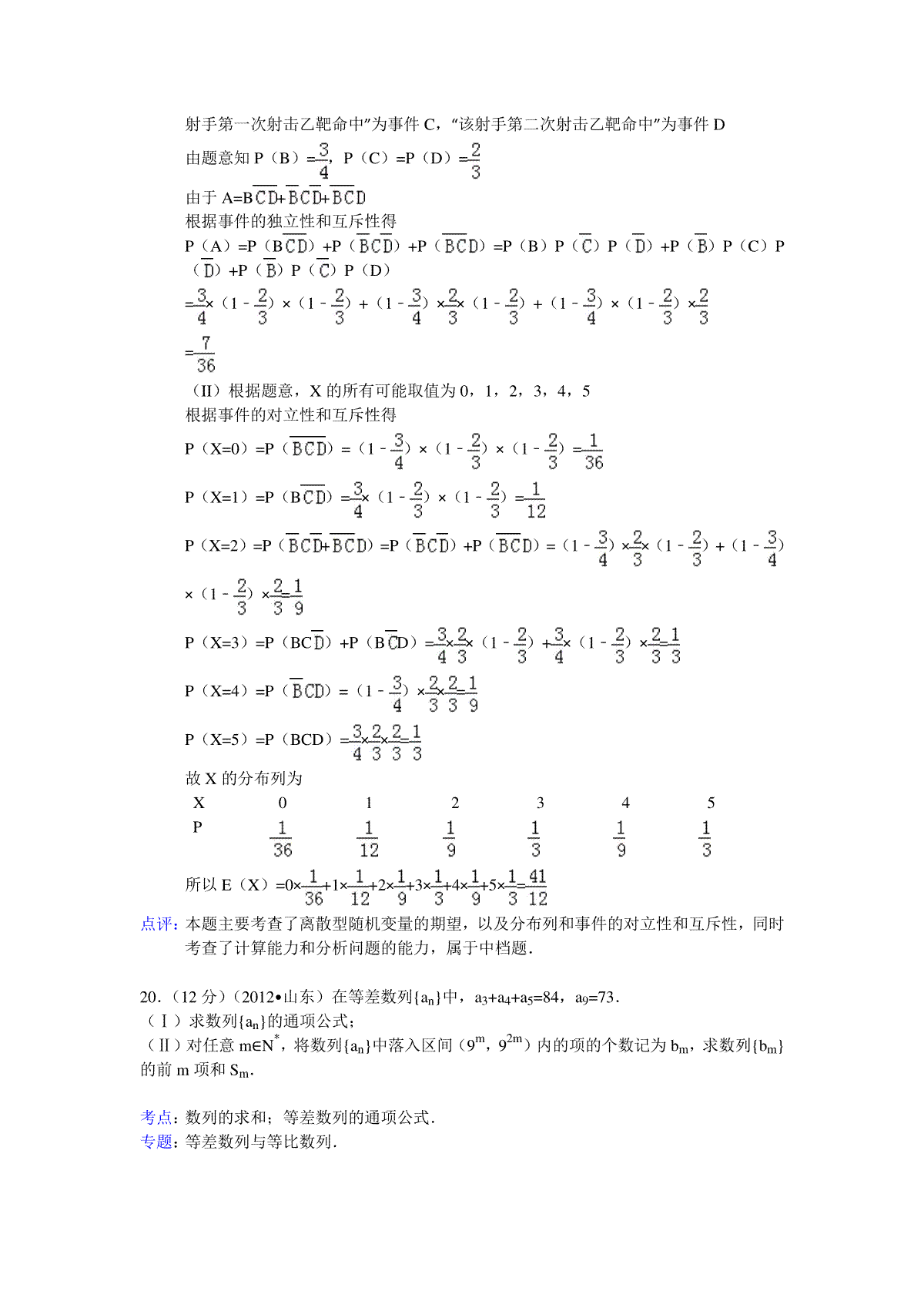 一、2012年高考真题数学【理】(山东卷)(含解析版)