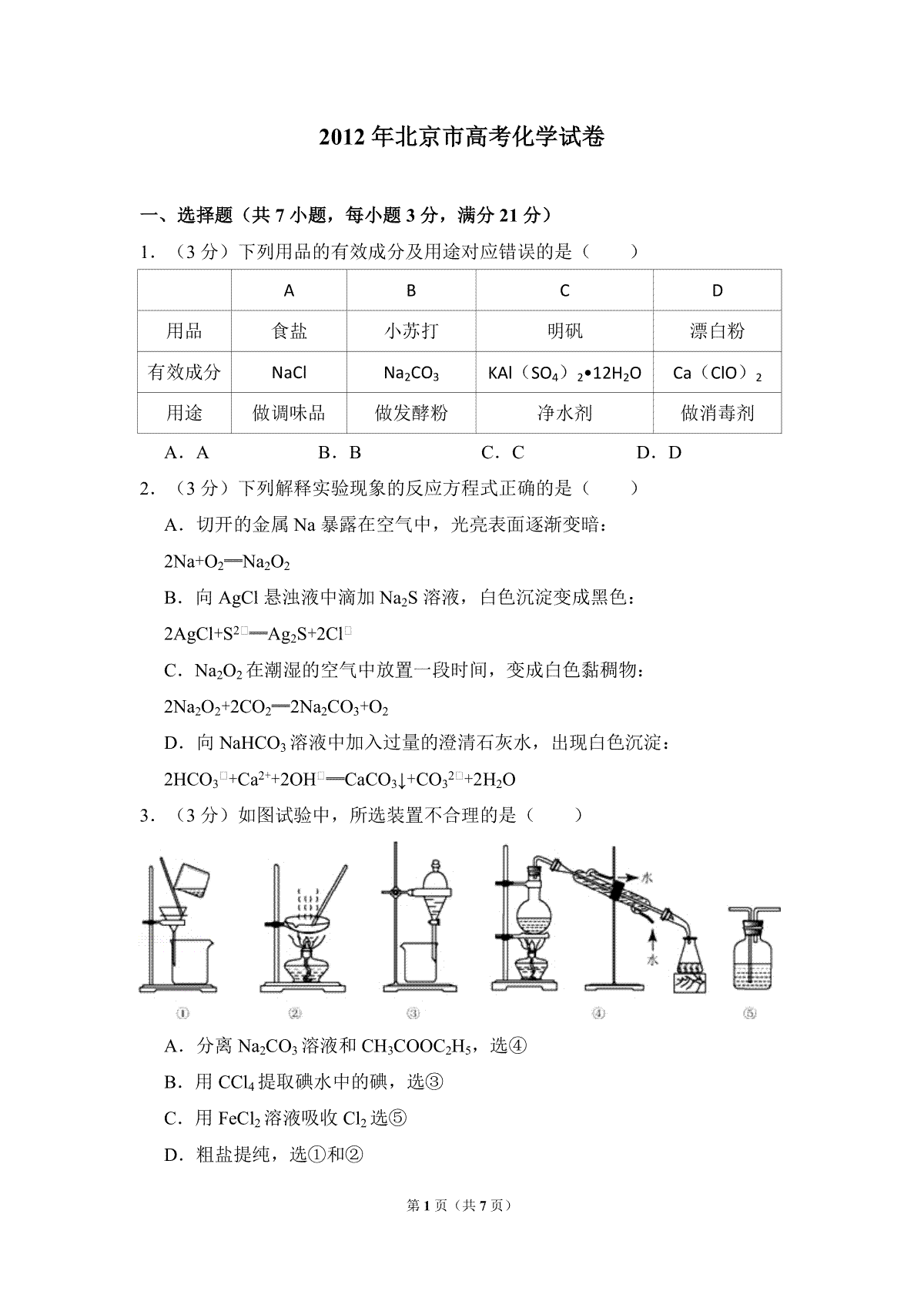 如果你想下载2012年北京市高考化学试卷(原卷版)DOC或PDF版,请点击本文末链接!