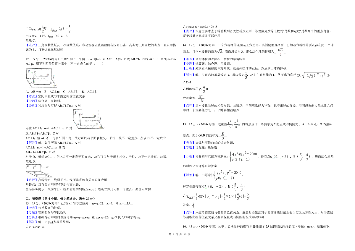 如果你想下载2008年海南省高考数学试题及答案(文科)DOC或PDF版,请点击本文末链接!