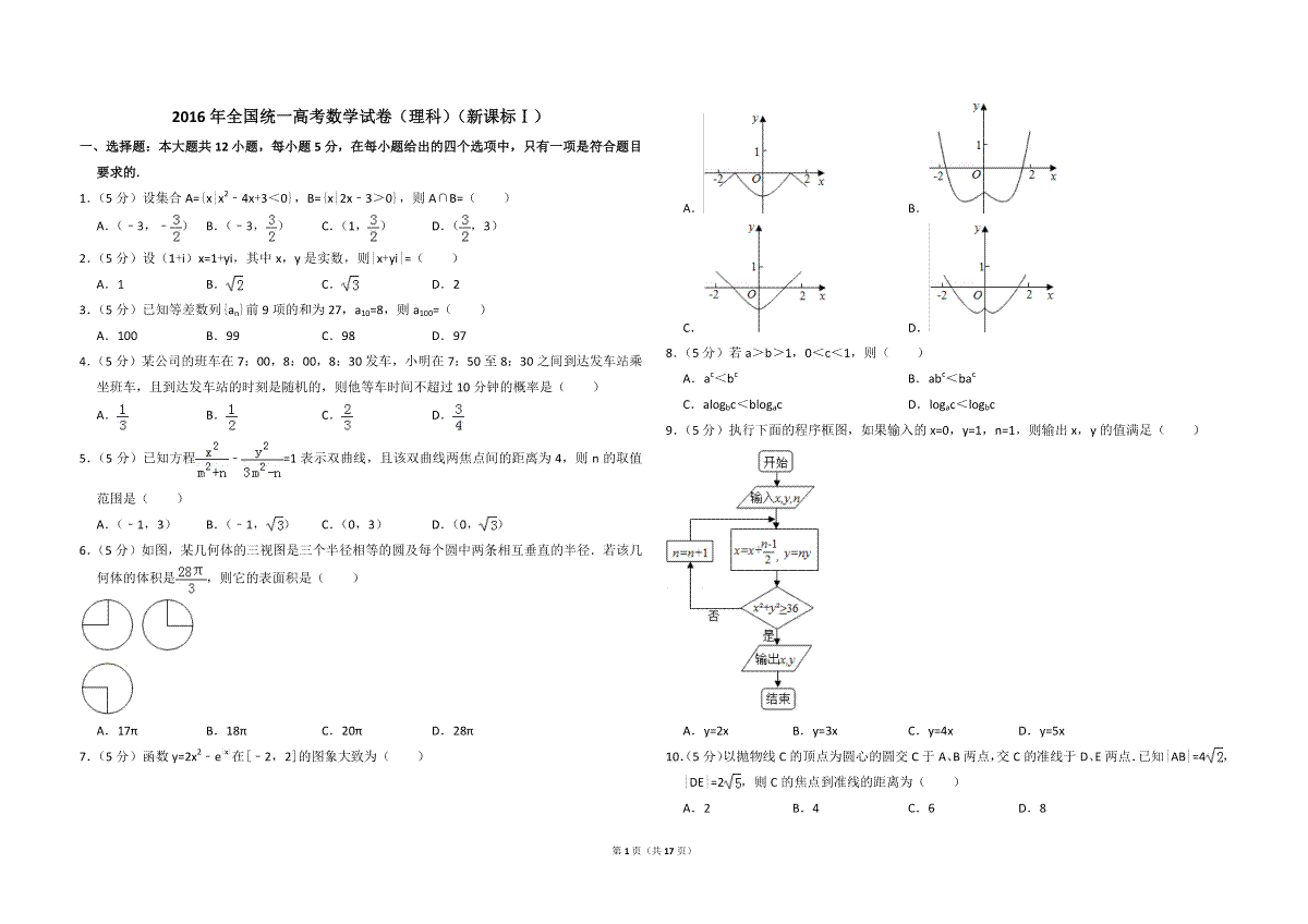 一、2016年全国统一高考数学试卷(理科)(新课标ⅰ)(含解析版)
