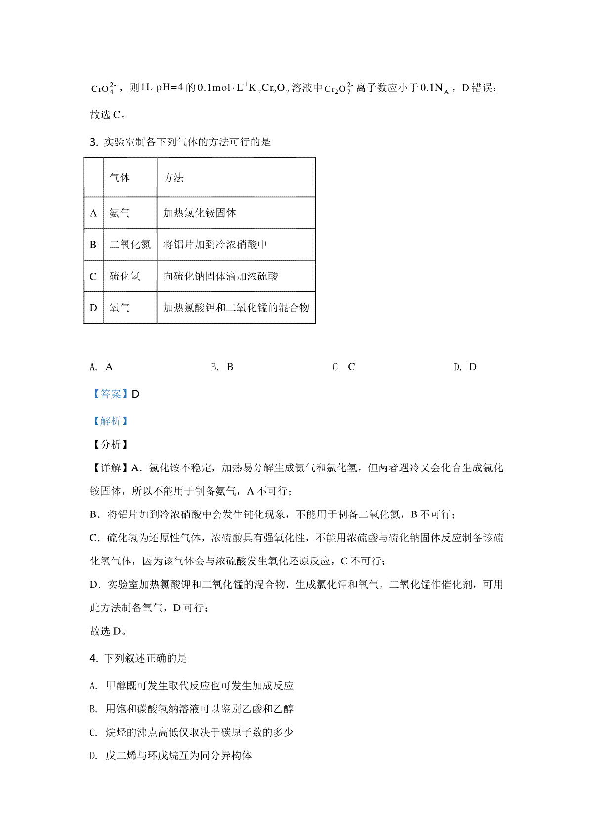 一、2021年高考全国甲卷化学试题(逐题解析word版)【适用:四川、云南、广西、贵州、西藏】