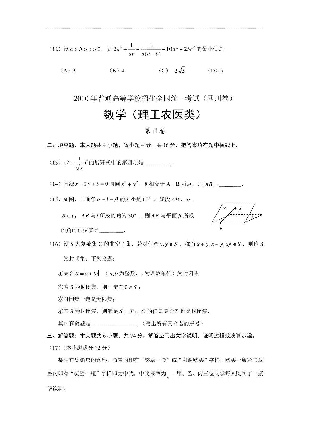 如果你想下载2010四川高考数学(理科)试题及参考答案DOC或PDF版,请点击本文末链接!