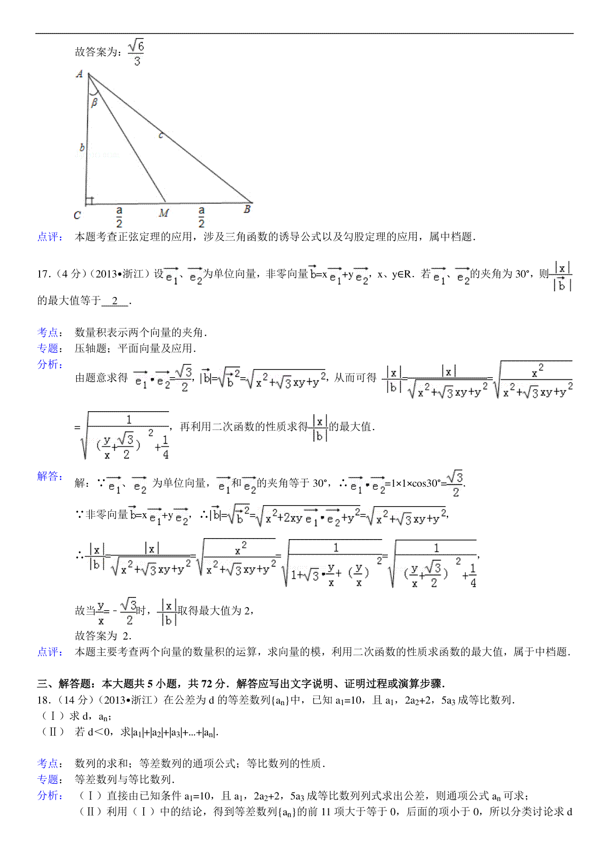 一、2013年浙江高考数学(理科)试卷(含答案)