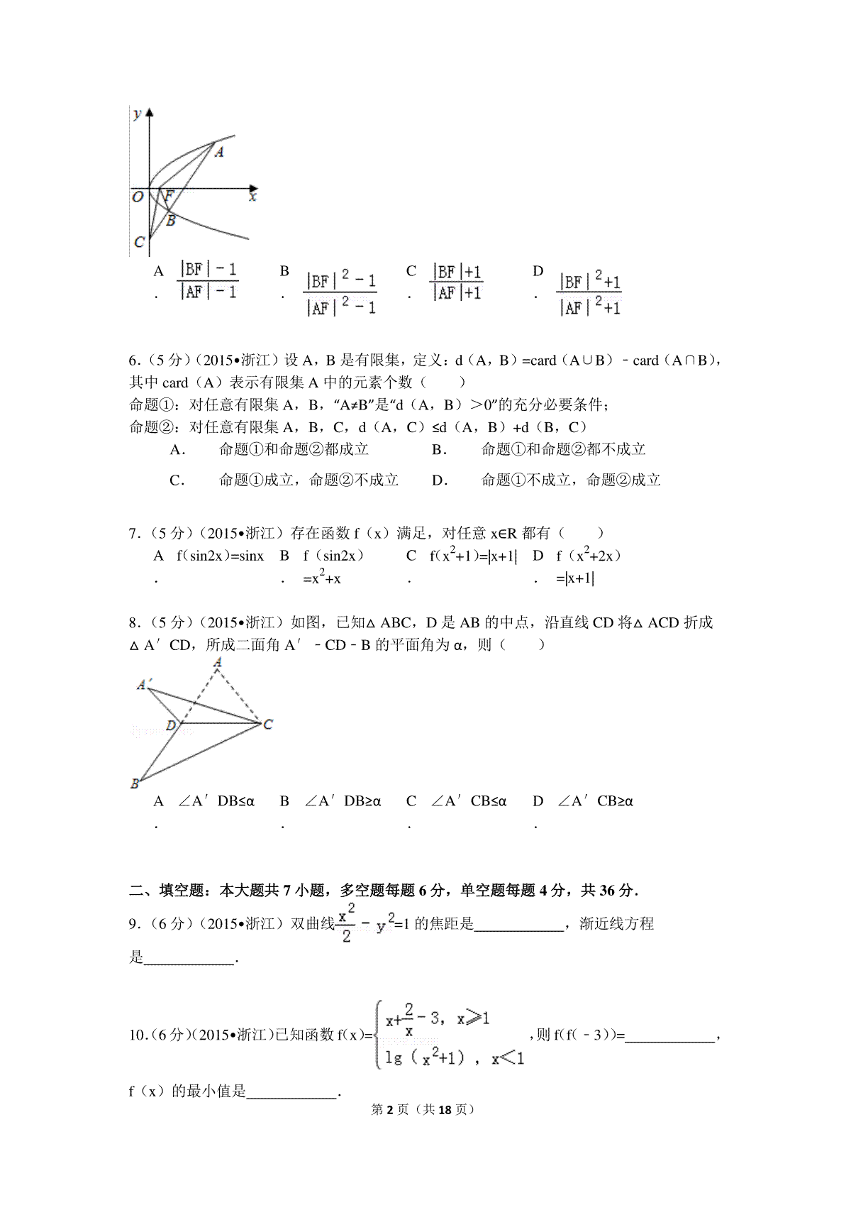 一、2015年浙江高考数学(理科)试卷(含答案)