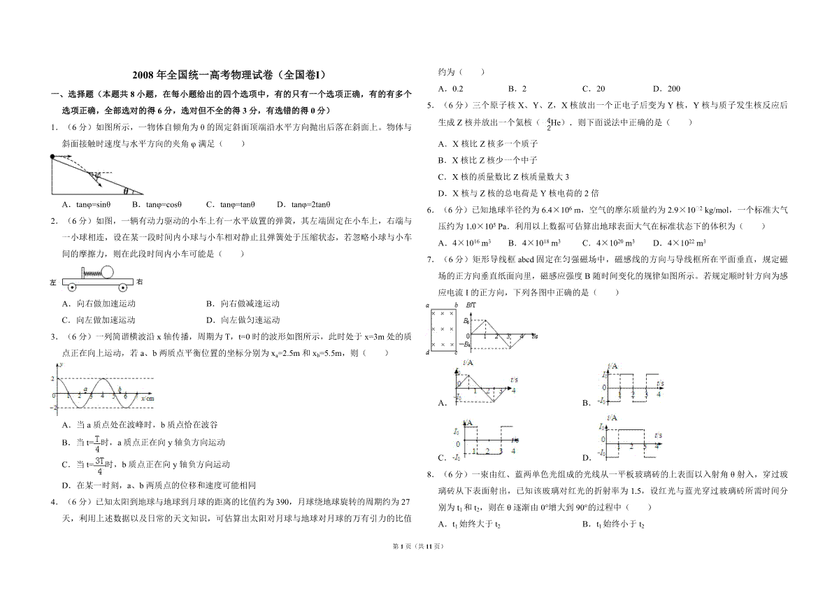 一、2008年全国统一高考物理试卷(全国卷ⅰ)(含解析版)