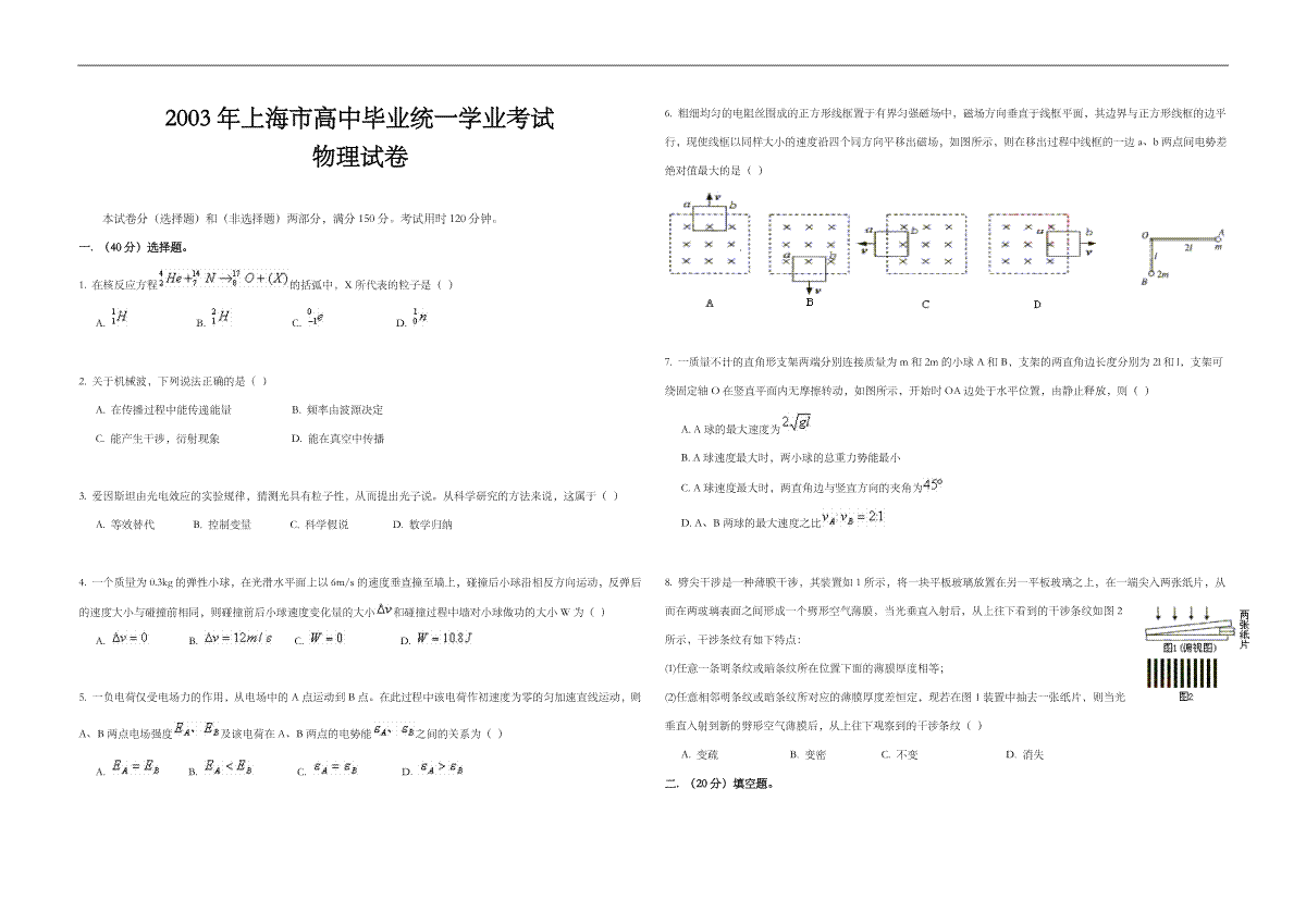 当前位置:首页 > 高中试卷 > 2003年上海市高考物理试题