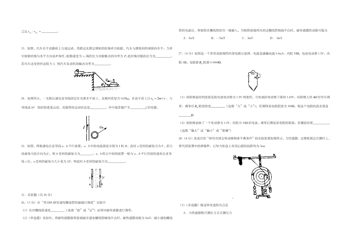 一、2015年上海市高考物理试题及答案