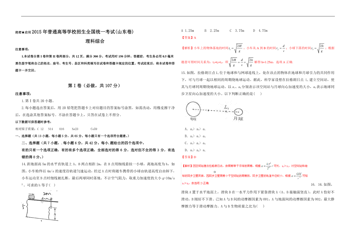 一、2015年高考真题 物理(山东卷)(含解析版)
