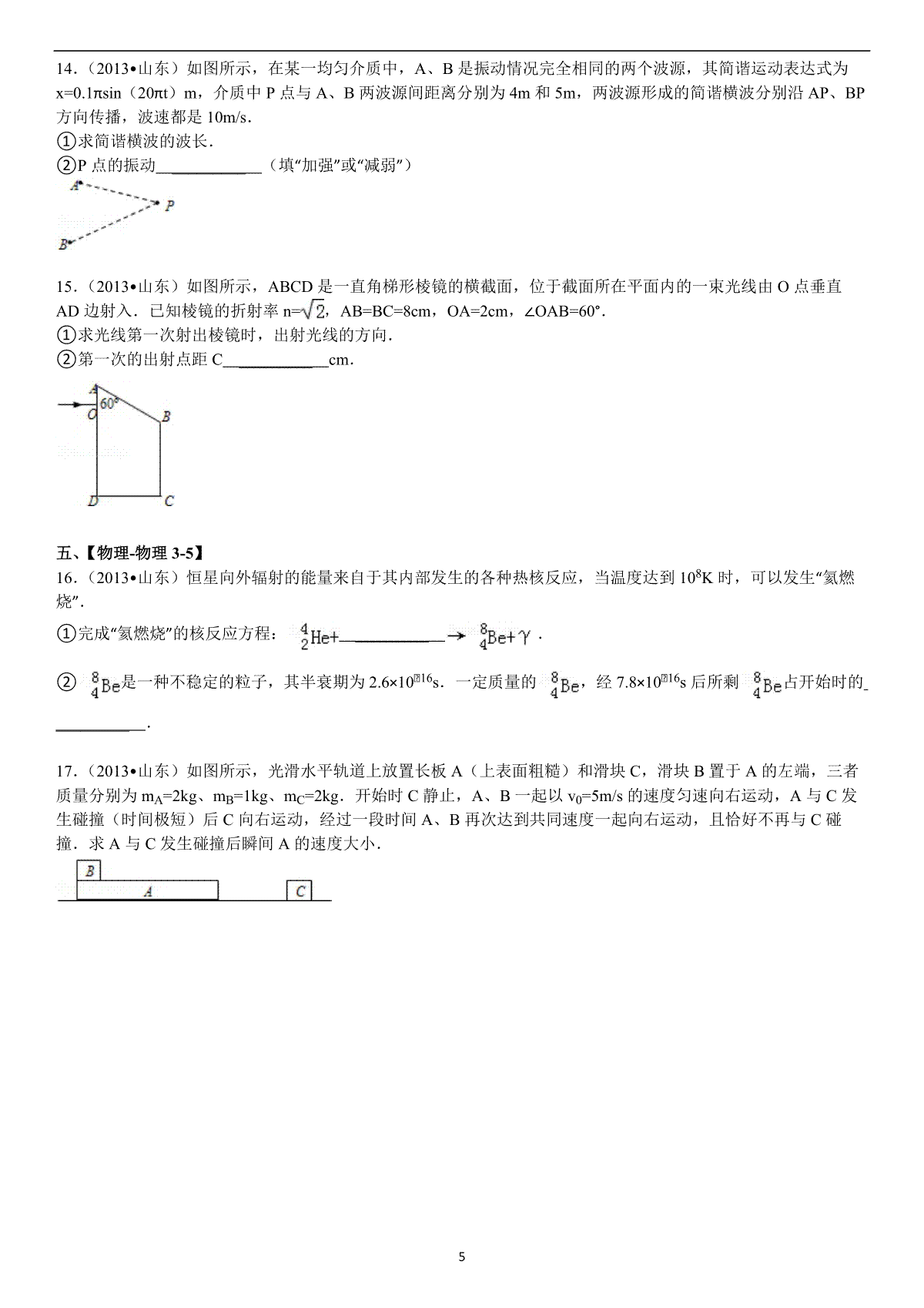 下载2013年高考真题 物理(山东卷)(原卷版)PDF格式或doc