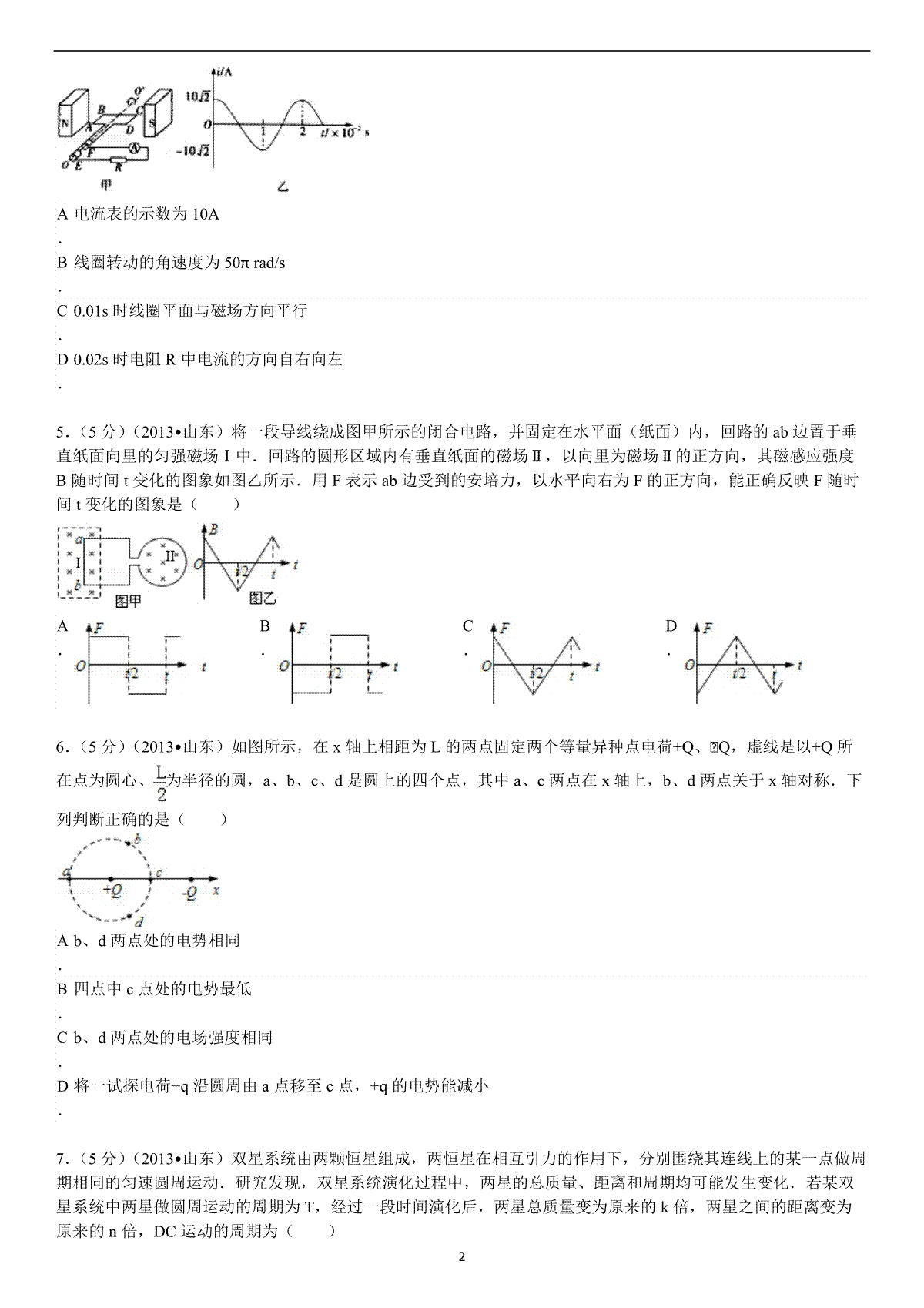 一、2013年高考真题 物理(山东卷)(原卷版)