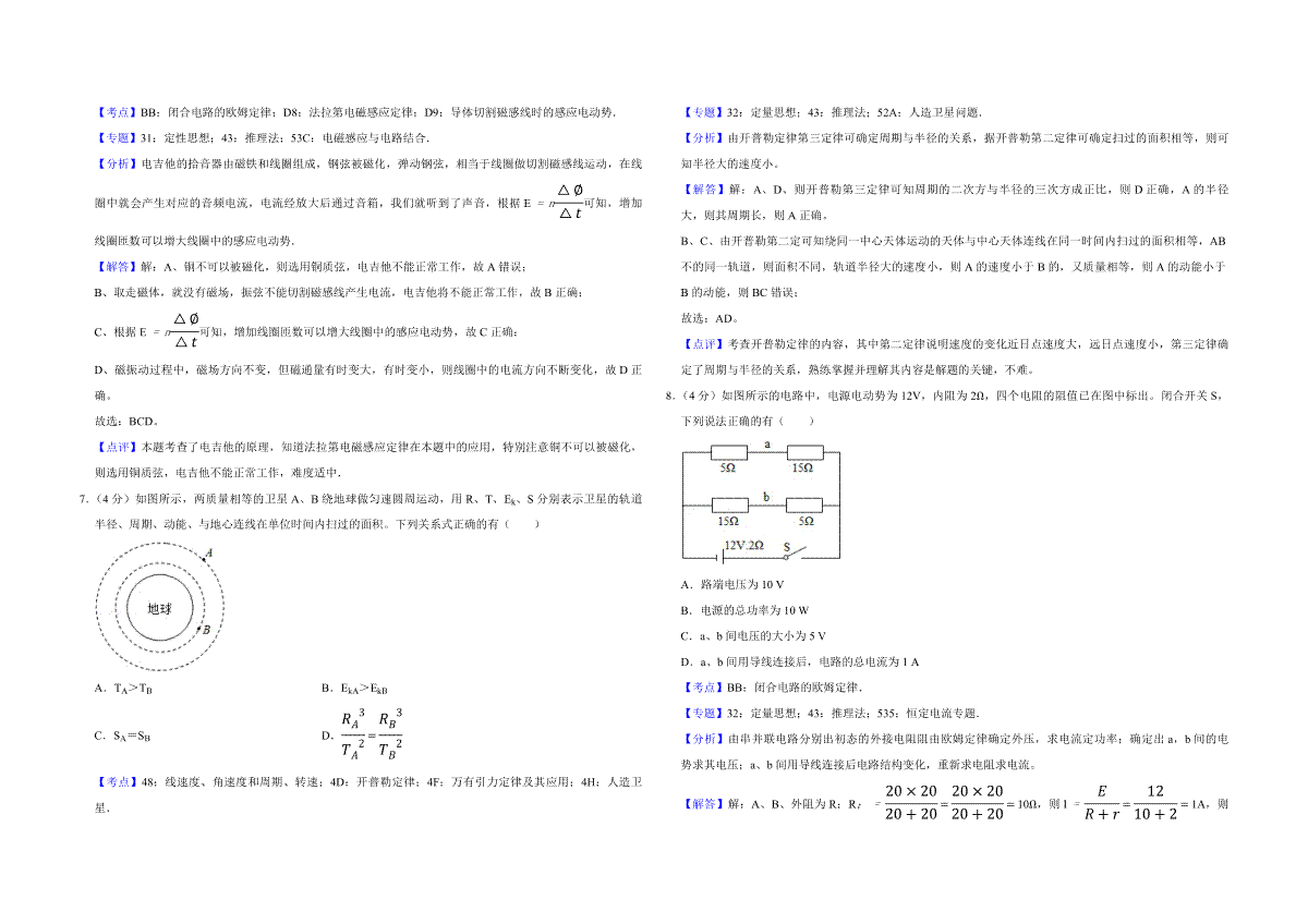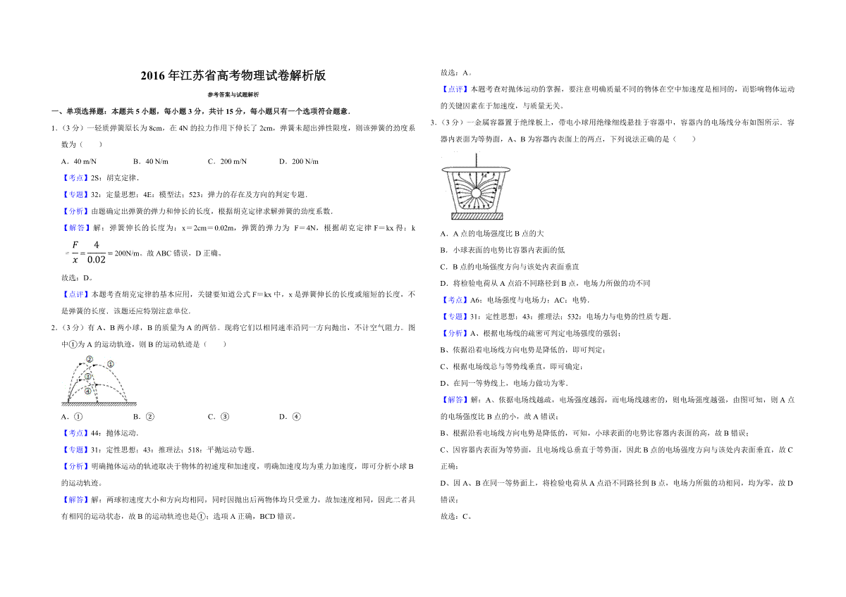 下载2016年江苏省高考物理试卷解析版 PDF格式或doc