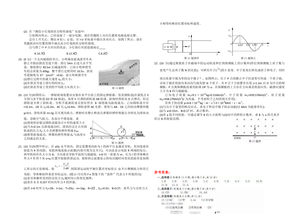 2020年浙江省高考物理【1月】(含解析版)于近期开考,本次考试对考生对知识的掌握参考价值大,为了方便大家复习掌握错题!小编在下文为大家准备了2020年浙江省高考物理【1月】(含解析版)试卷及答案解析详情,仅供考生参考。