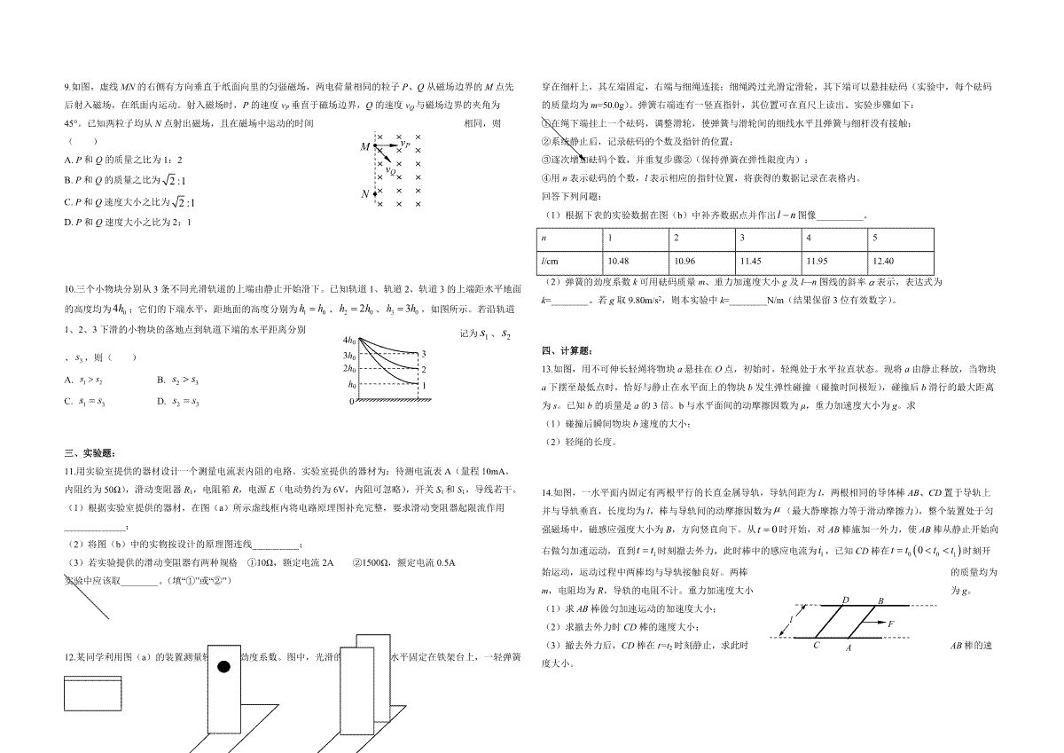 一、2019年海南高考物理试题及答案